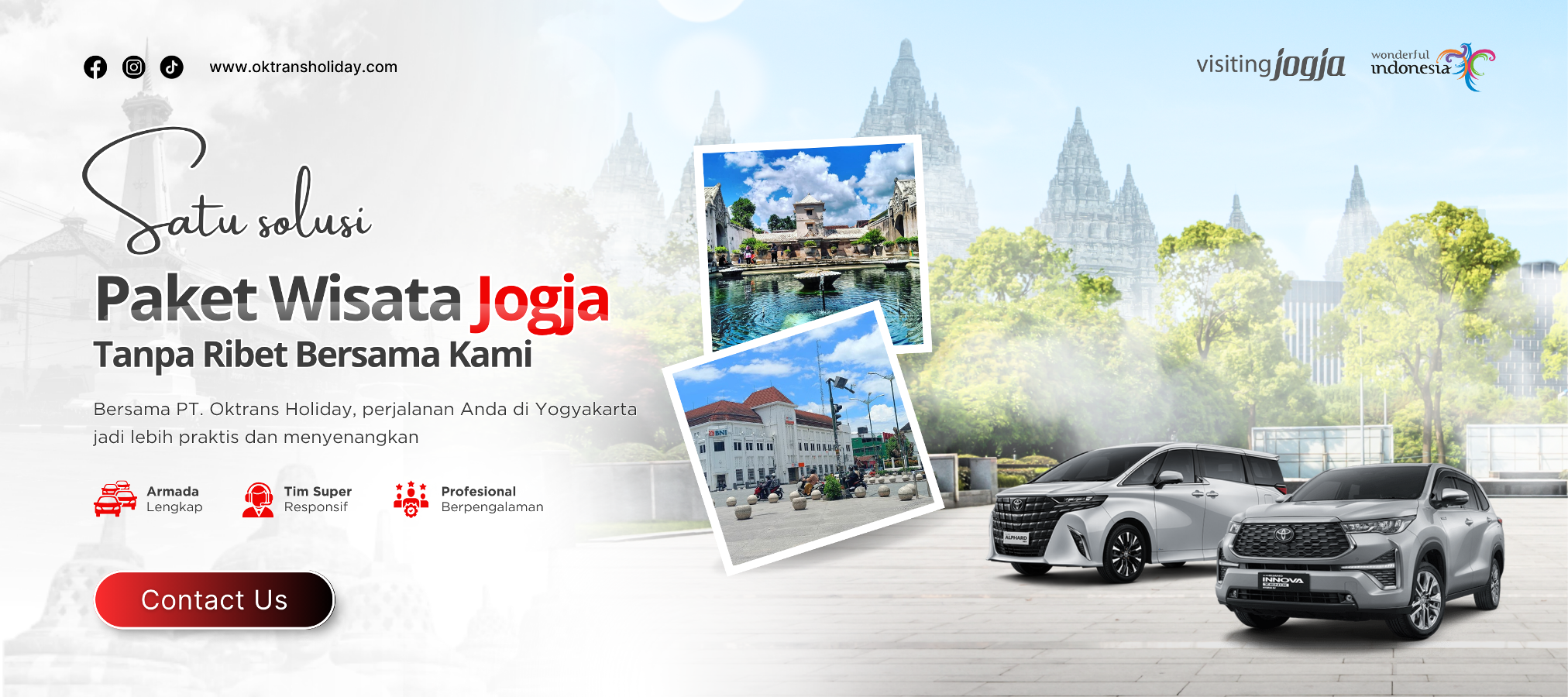 Bersama PT. Oktrans Holiday, perjalanan Anda di Yogyakarta jadi lebih praktis dan menyenangkan. Kami menyediakan layanan rental mobil dengan sopir, paket wisata Jogja yang menarik, hingga kegiatan outbound dan gathering untuk kebutuhan pribadi maupun instansi.